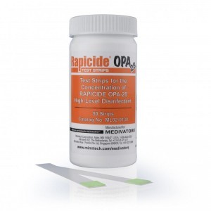 Rapicide OPA/28 Test Strips provide a fast disinfectant reaction time and user-friendly color comparison chart. The indicator test strips are used for testing RAPICIDE OPA 28 High-Level Disinfectant, and ortho-phthalaldehyde based disinfectant available for use in an automated endoscope reprocessor (AER) or for manual disinfection. (2 Bottles, 50 strips per bottle)